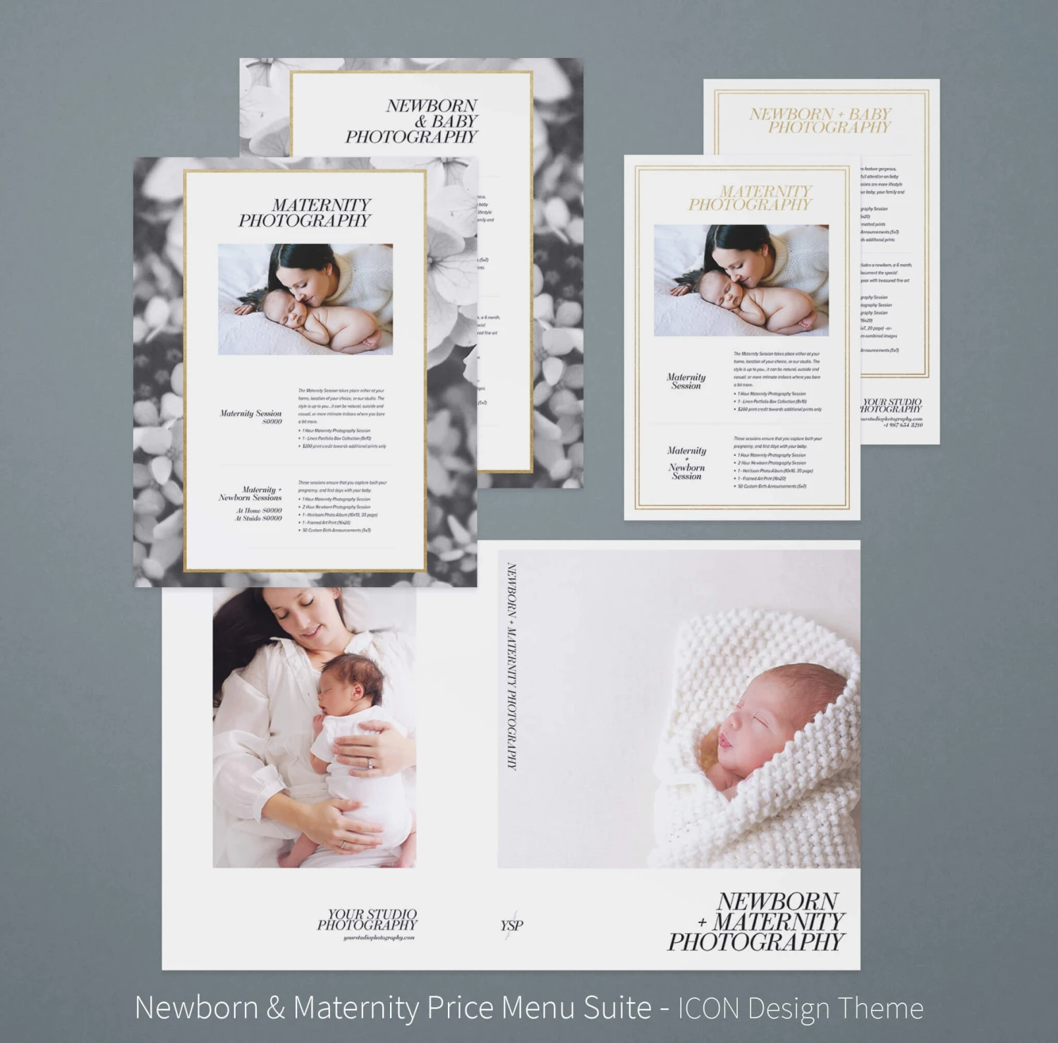 • 2-5 pre-sized product mockups (*Included with studio product version only)