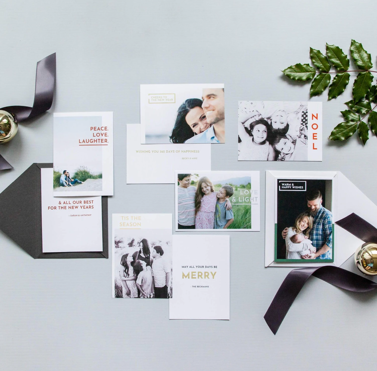 • 6 unique holiday greeting designs