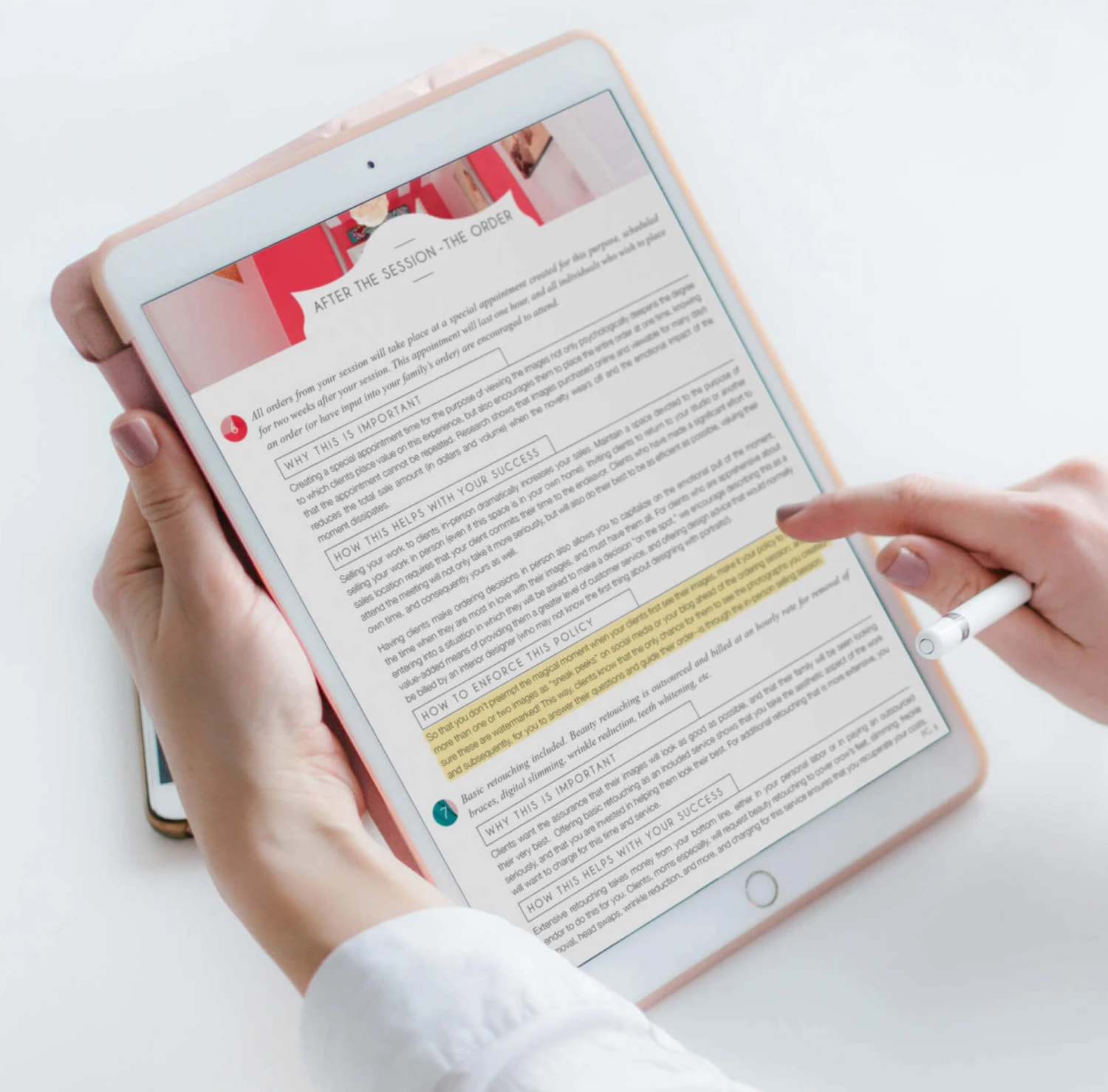 This handbook is a list of effective policies designed to provide you with guidance and advice, compiled from our experience consulting with hundreds of photographers just like you. We’ve created what we feel are the most crucial policies in portrait photography, all built to minimize wasted time, maximize your sales, and reaffirm your love for the craft. In these pages, you’ll discover not only why each policy is important to your success but also how they impact your business’s bottom line. Its text is available to use in whole or in part; copy and paste these responses into emails and printed/online studio policies, or modify them to suit your own needs and your own business.