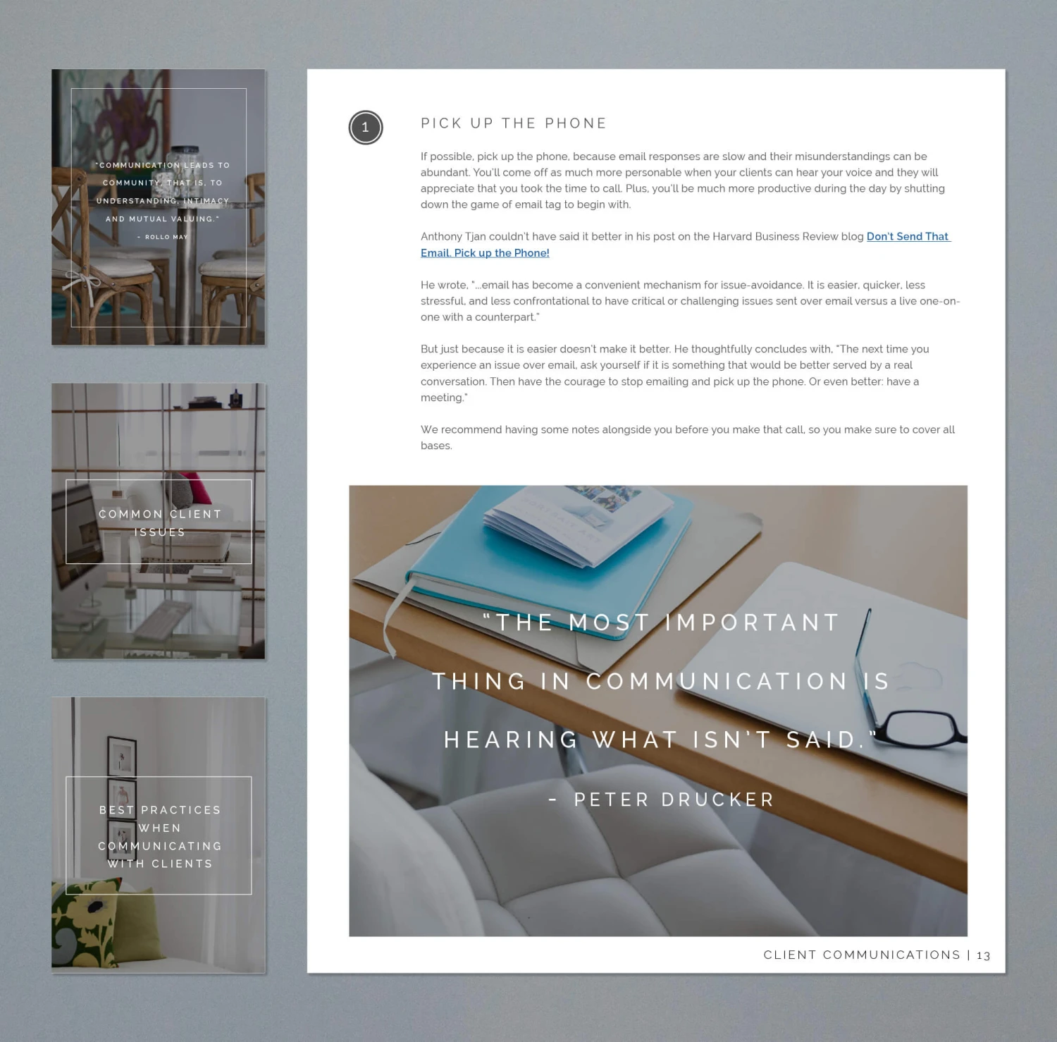 • 17 page PDF with our best practices to implement in all client communications to leave you feeling confident and empowered