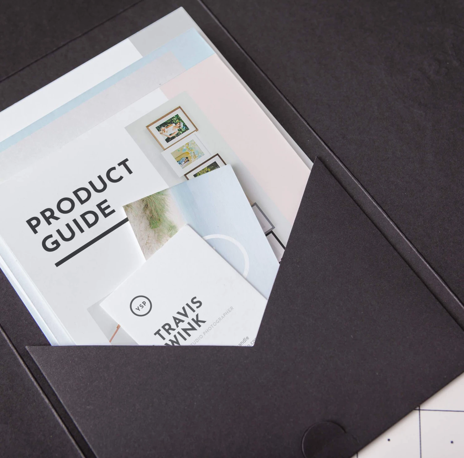 Your photography studio welcome packets have found their dream home. Made with luxuriously thick card stock, these smart folders are designed to present your client information and more, in the best light possible.